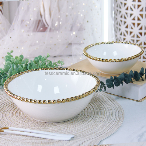RP025高級ゴールドビーズ食器シェフ料理サラダボウルセットテーブルセッティングイベント用磁器楕円形装飾ボウル