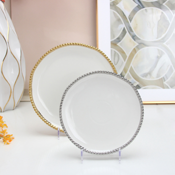 RCP015จานเชฟเซรามิกสีเงินขอบลูกปัด16 "จานใหญ่จานเสิร์ฟอาหารงานแต่งงานของโรงแรม