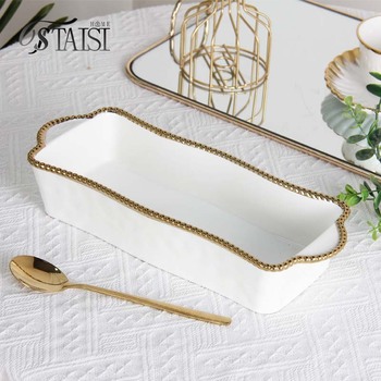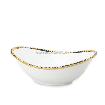 RP025 หรูหราลูกปัดทองอาหารเย็นเชฟเสิร์ฟจานชามสลัดชุดพอร์ซเลนรูปไข่ตกแต่งชามสําหรับโต๊ะจัดงาน