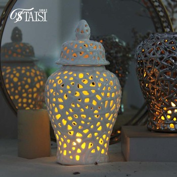 ไฟตกแต่งบ้านแบบนอร์ดิก J159W/J159WG ในขวดโหลแจกันเซรามิกสีขาวตกแต่งโถขิงสีขาวของตกแต่งห้องนั่งเล่น
